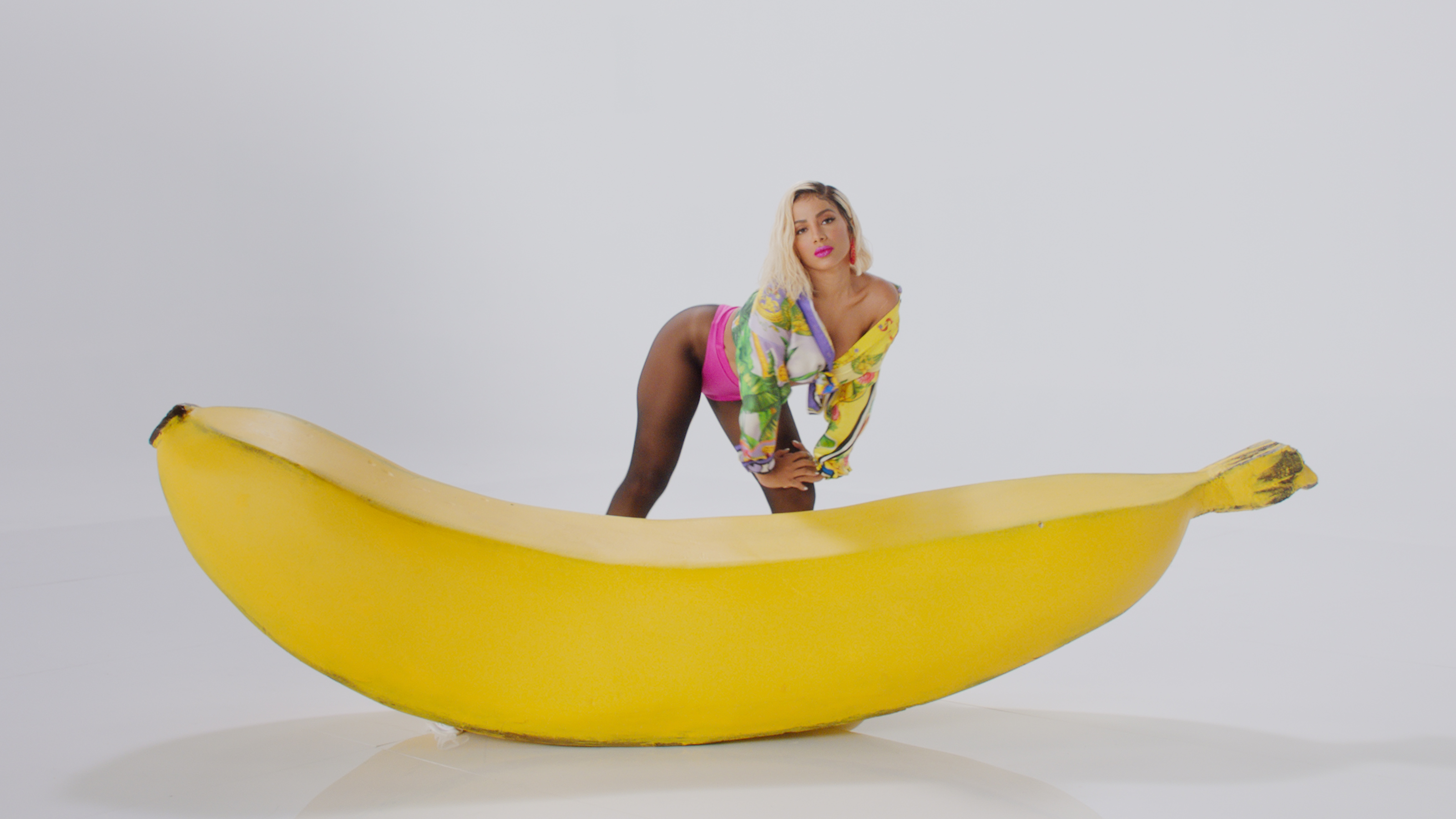 “Banana” é a segunda faixa do álbum e tem parceria com a cantora americana Becky G. Em inglês e espanhol, a letra é bem-humorada e cheia de trocadilhos. “A música tem também uma batida de funk. O compositor me disse que se inspirou em ‘Vai Malandra’ (risos). Para o clipe, a gente optou por fazer um trocadilho com as frutas e colocamos até uma feira no estúdio”, conta Anitta.