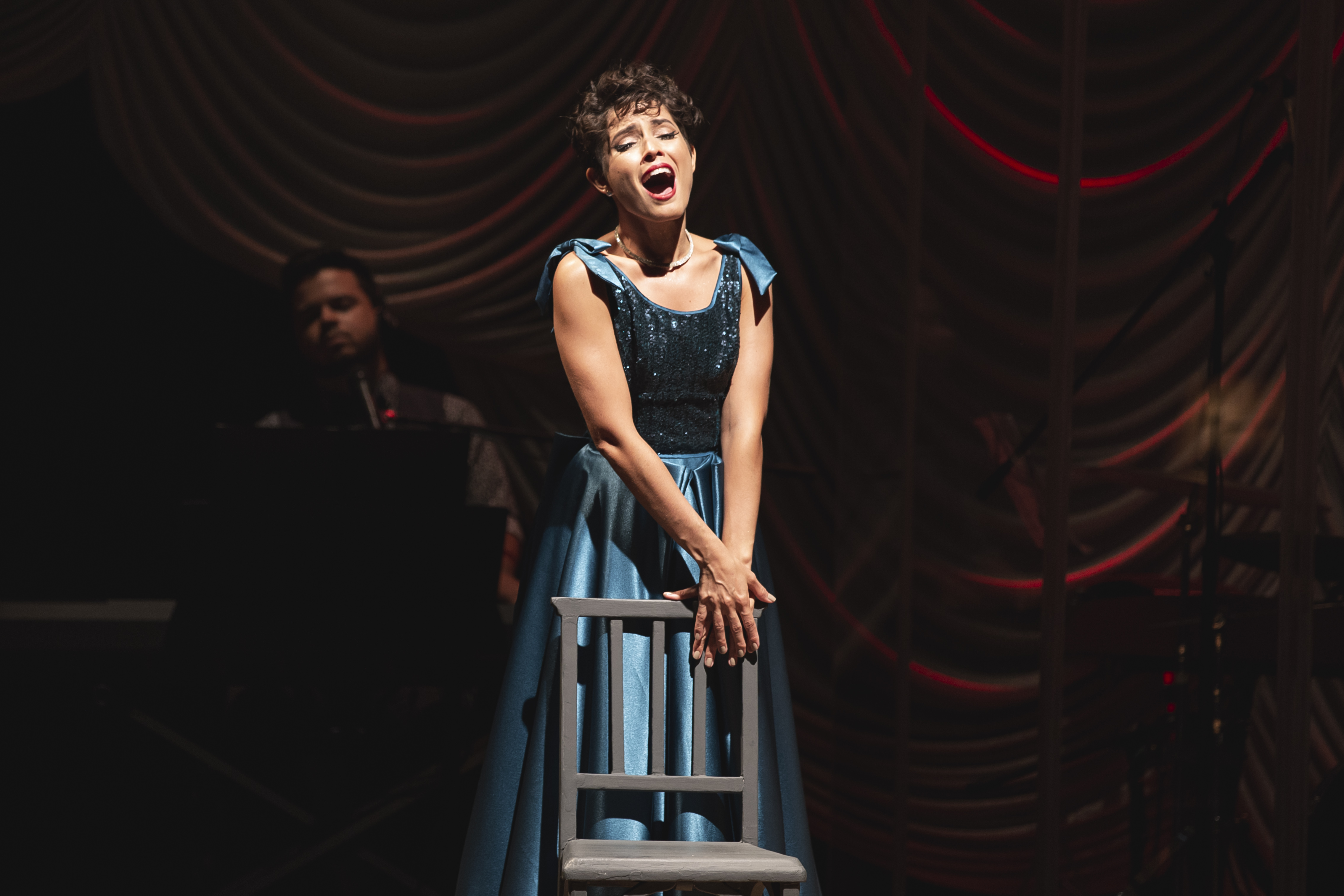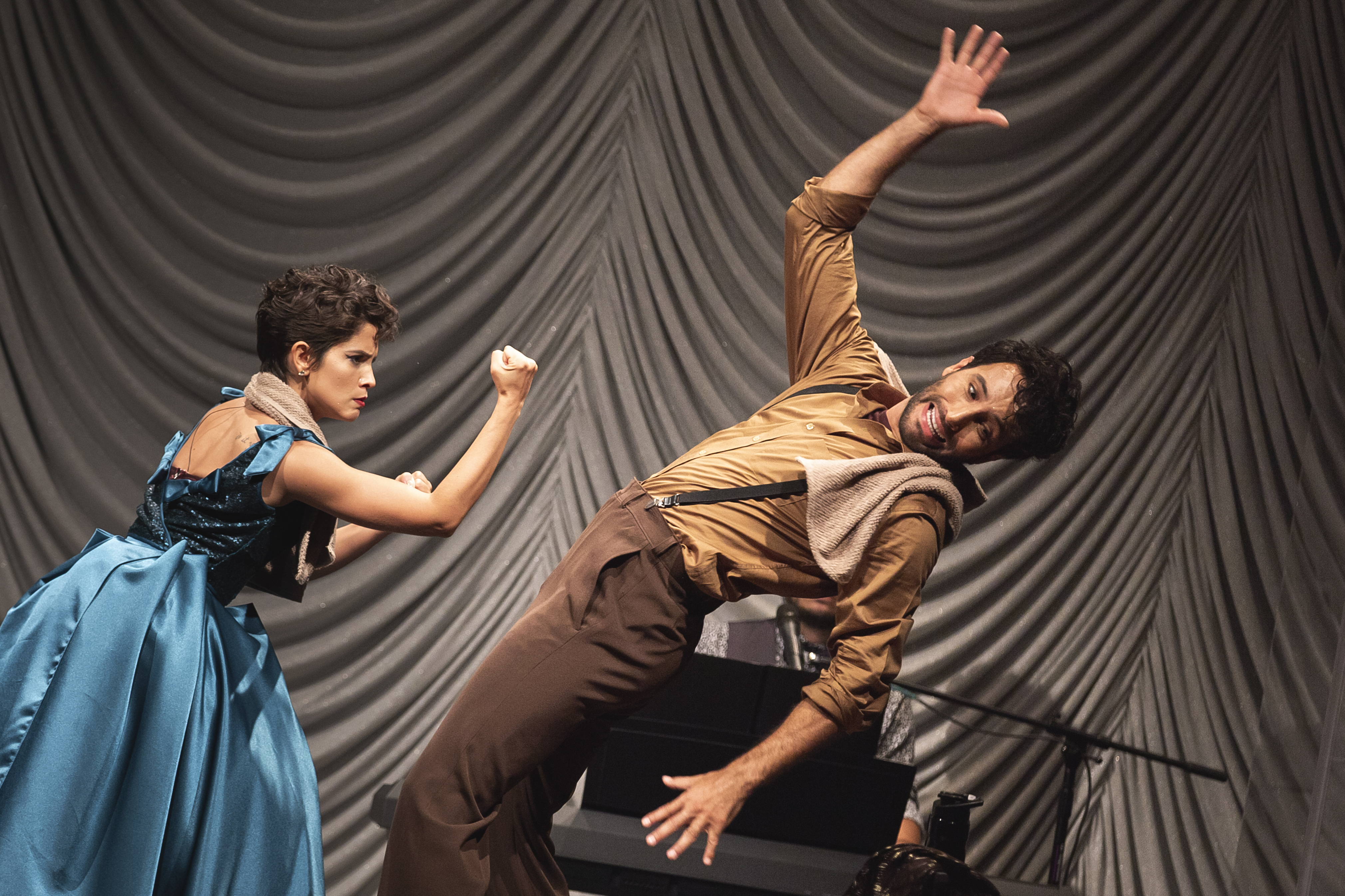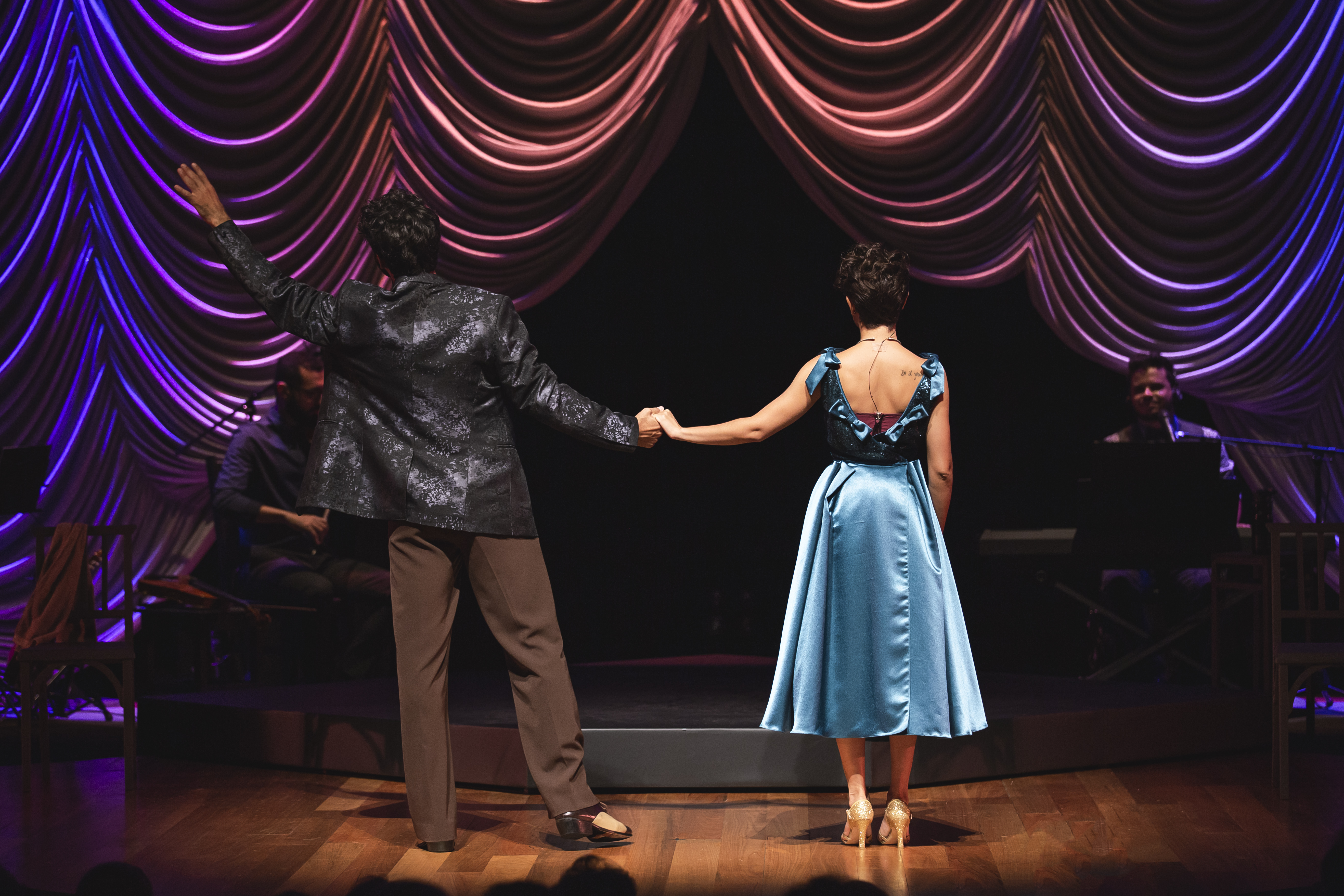 Os figurinos criados pelo estilista Fause Haten se revelam ao longo do espetáculo. As peças vão sendo removidas uma a uma e trazem novas camadas que se traduzem em números musicais. Já o cenário de Doris Rollemberg faz uma verdadeira homenagem ao teatro, trazendo para a cena um camarim, coxias e até o urdimento de um palco. Uma banda composta por cinco músicos também acompanha a dupla de atores em cena.