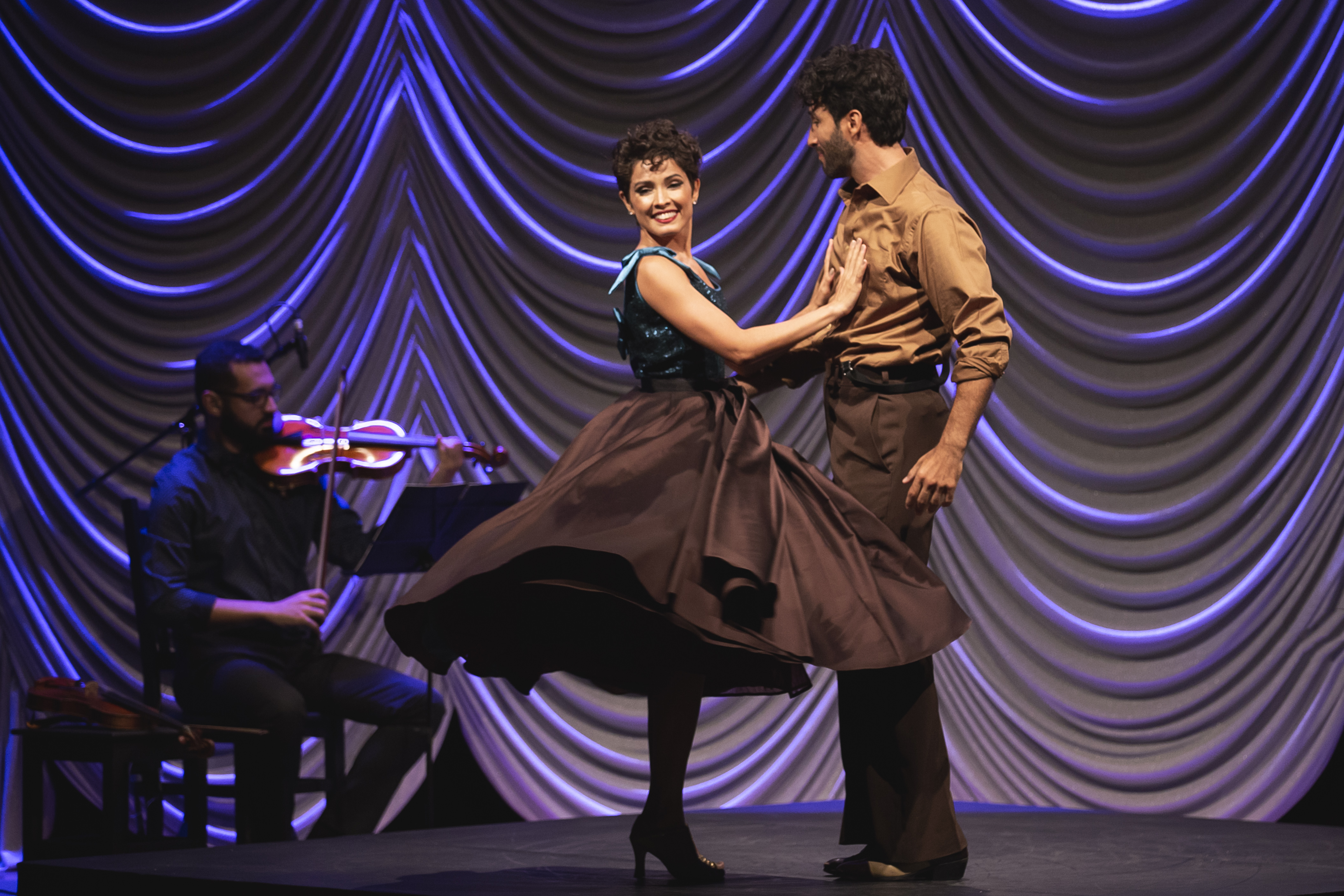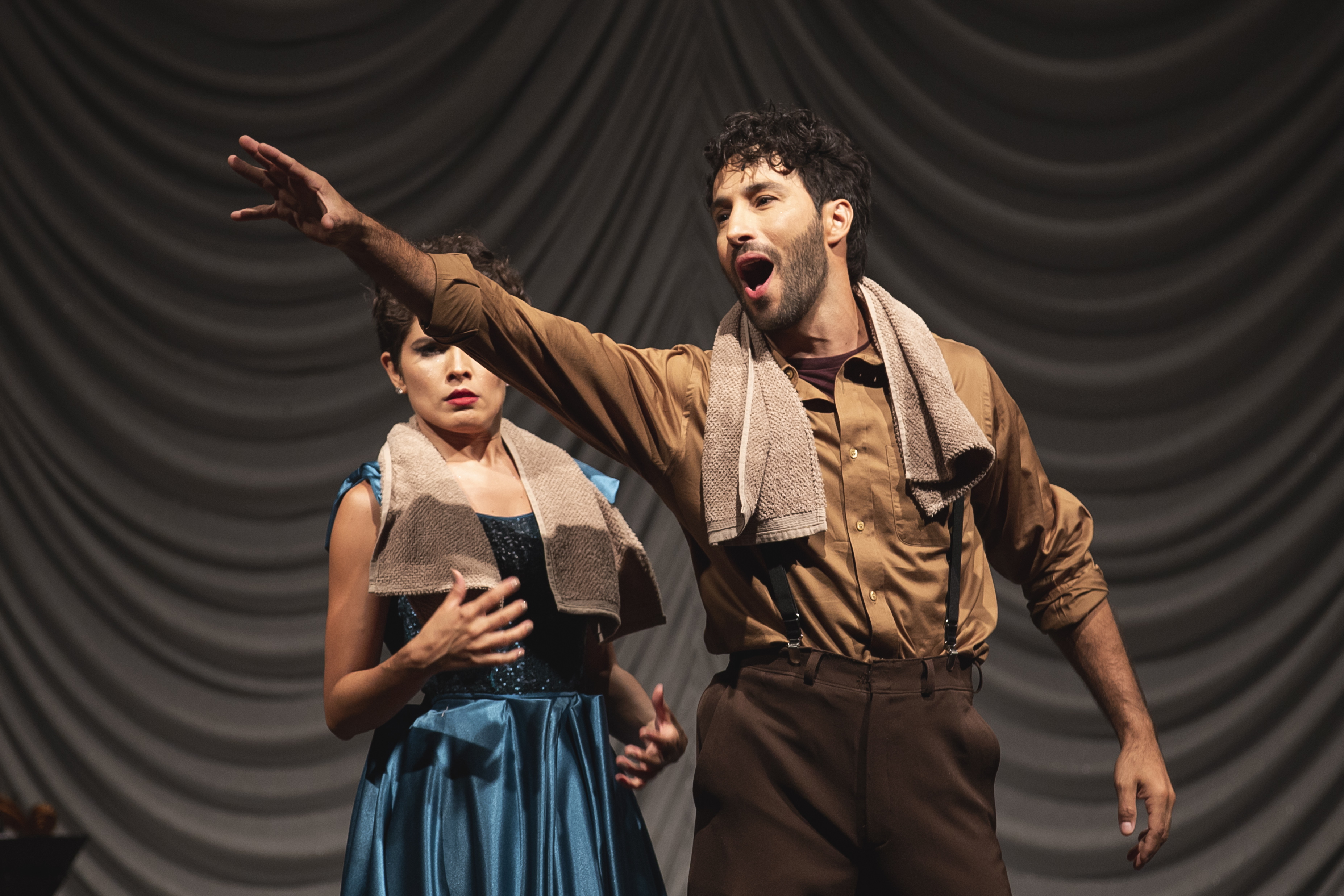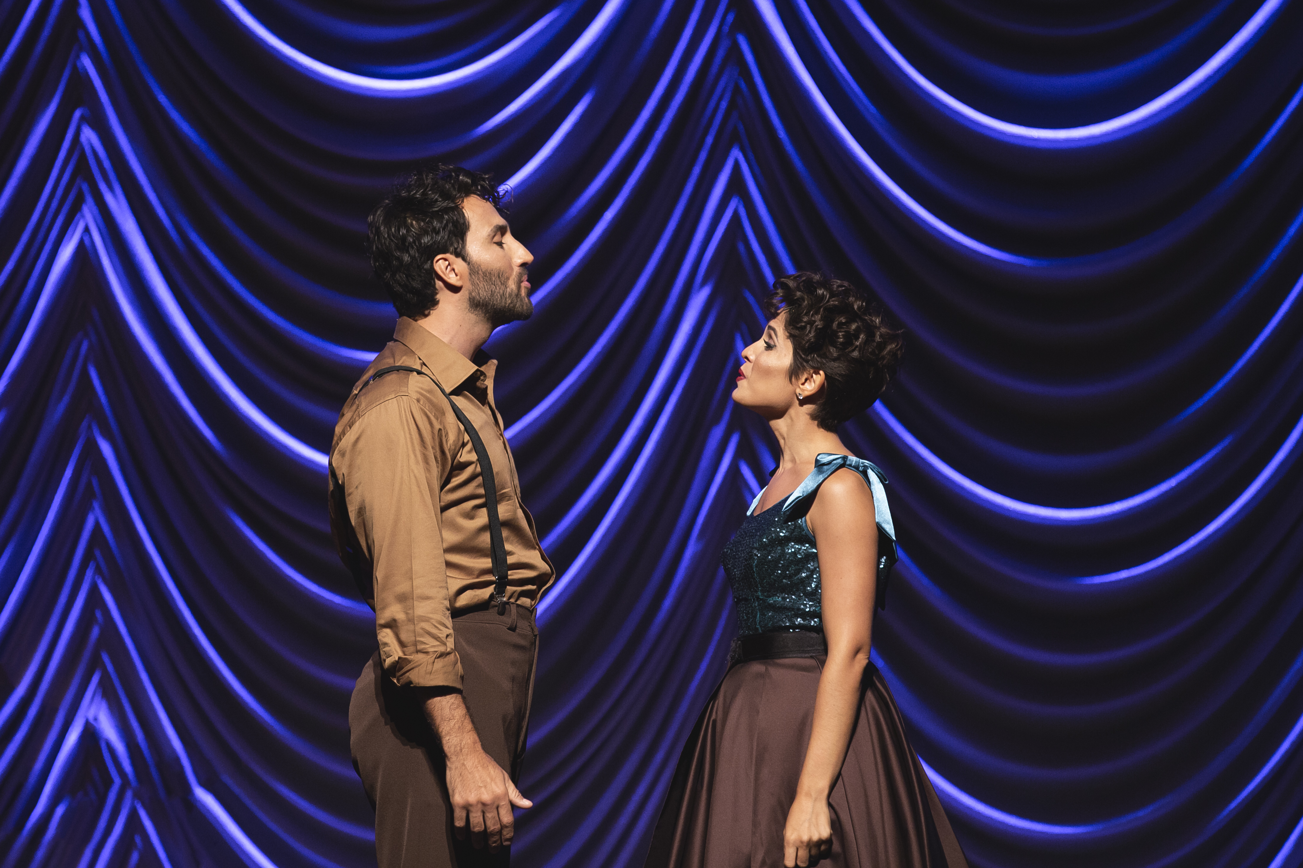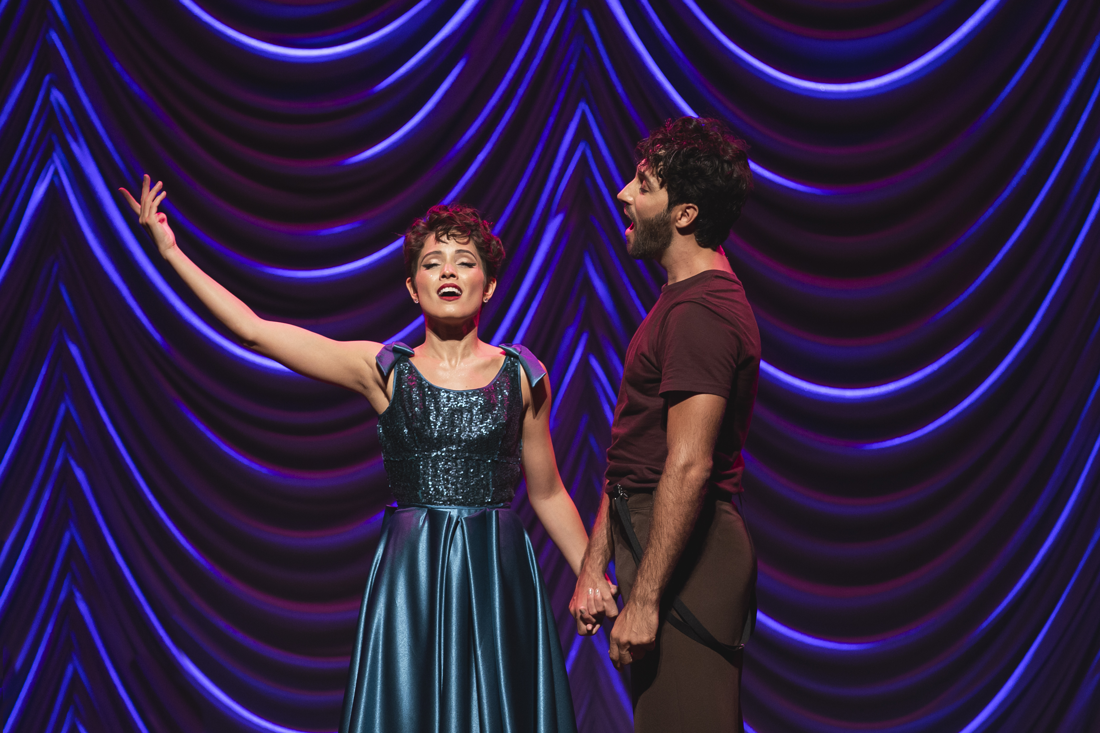 Os figurinos criados pelo estilista Fause Haten se revelam ao longo do espetáculo. As peças vão sendo removidas uma a uma e trazem novas camadas que se traduzem em números musicais. Já o cenário de Doris Rollemberg faz uma verdadeira homenagem ao teatro, trazendo para a cena um camarim, coxias e até o urdimento de um palco. Uma banda composta por cinco músicos também acompanha a dupla de atores em cena.