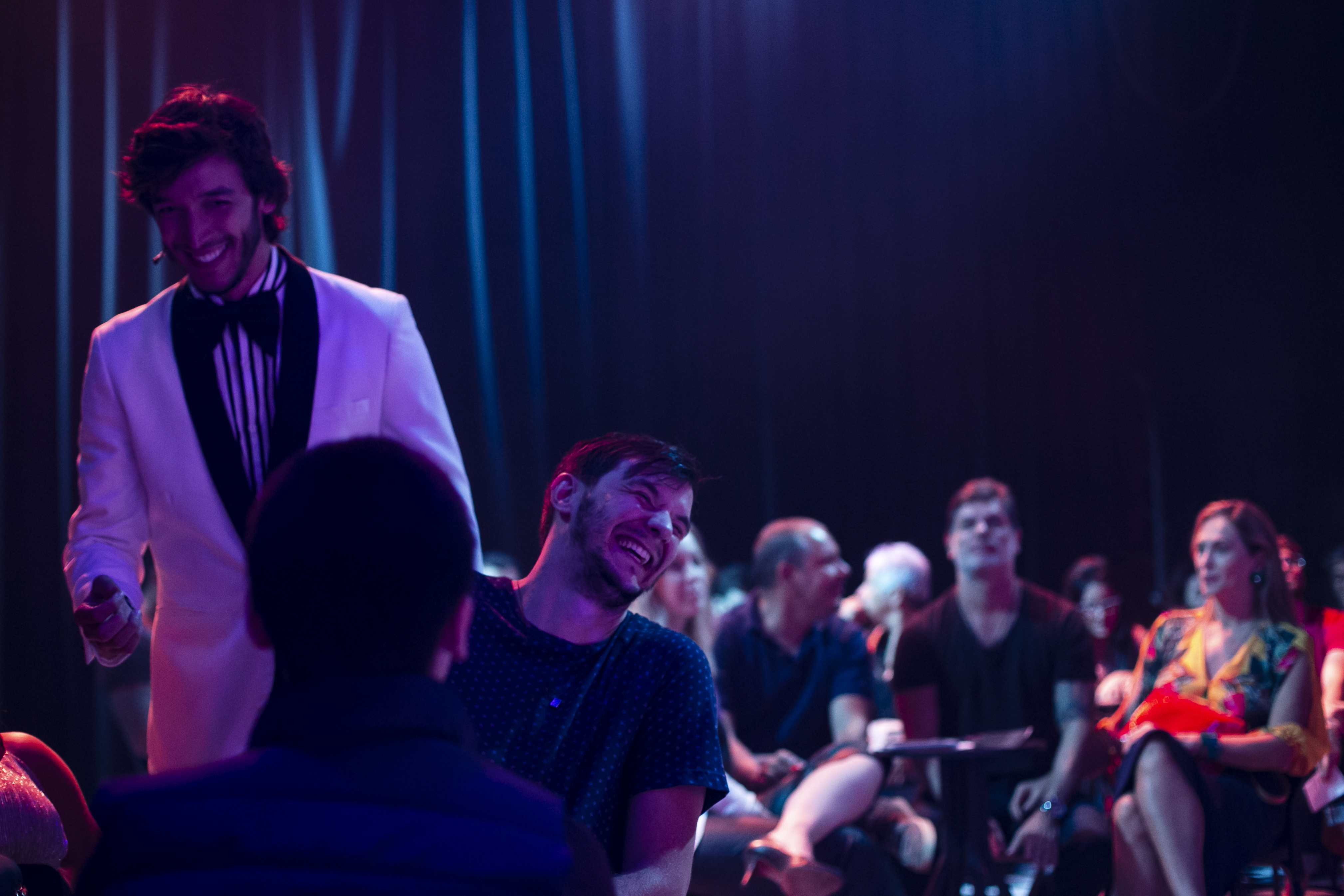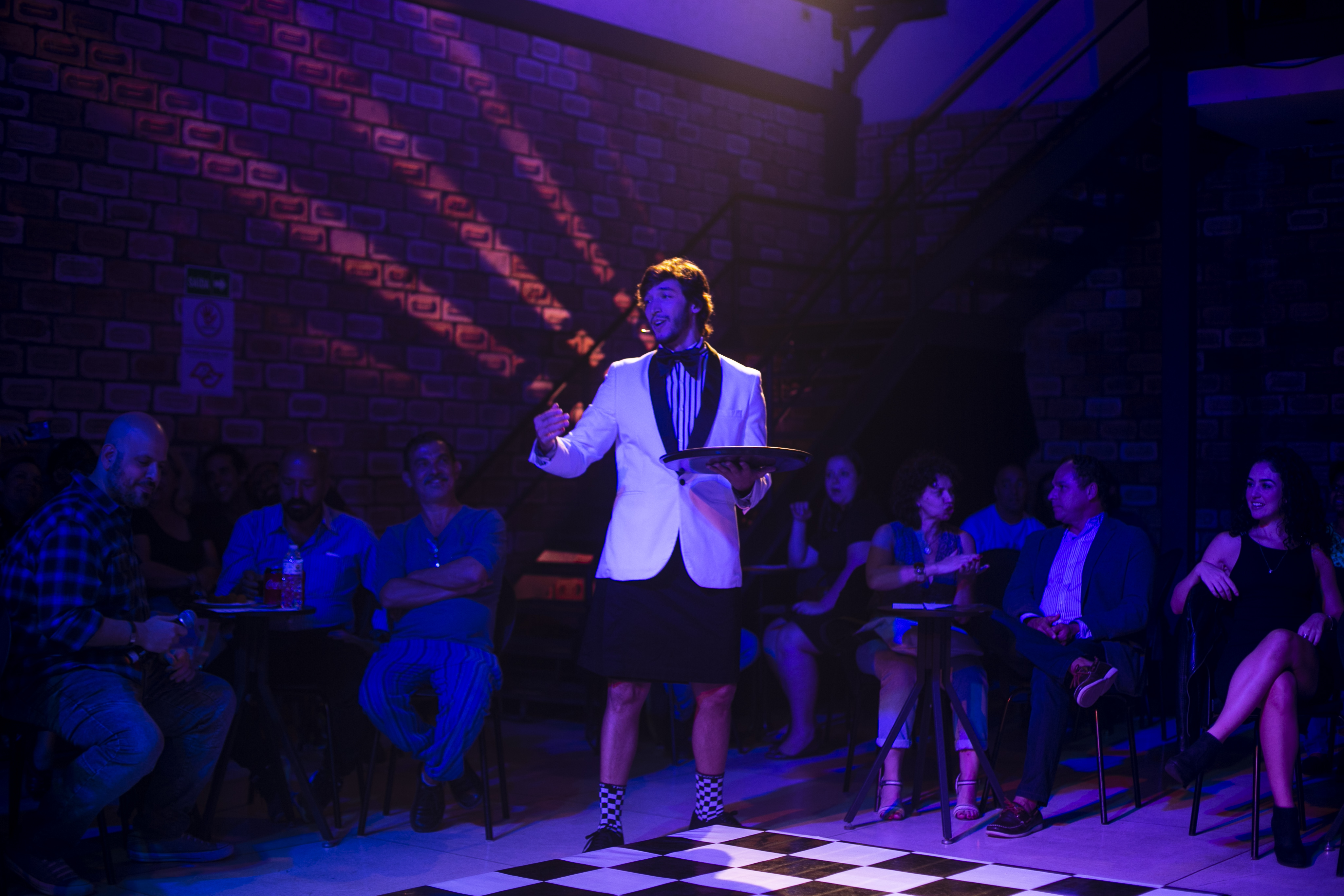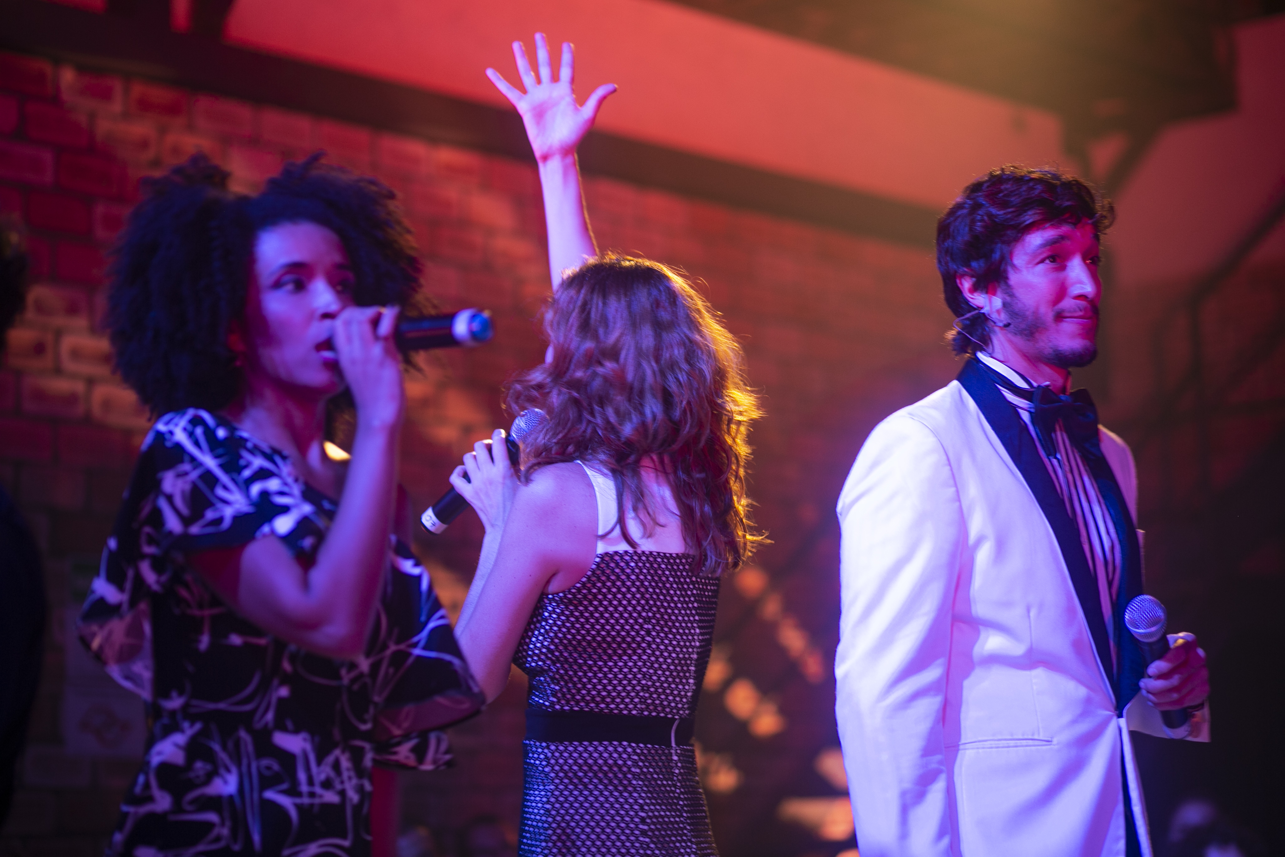 Público e atores transformam palco do Teatro Viradalata em um bar na peça “Segunda Okê”