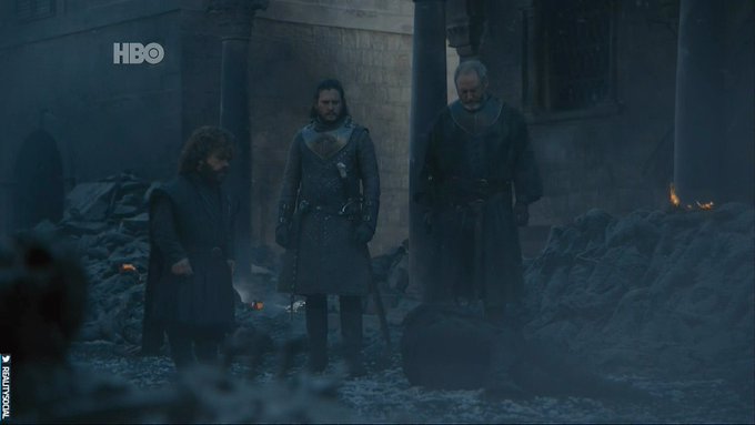 A série começa muito bem, com uma qualidade de fotografia extraordinária aos caminharmos junto com Tyrion (Peter Dinklage) por toda uma King’s Landing devastada. O primor na qualidade segue Tyrion ao se deparar com os irmãos mortos, debaixo dos escombros… tirando qualquer teoria absurda de que eles teriam sobrevivido após o quinto episódio. Ponto positivo!