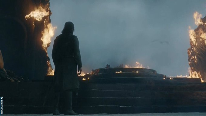 O final da série da HBO fez Jon Snow (Kit Harington) matar Daenerys Targaryen (Emilia Clarke) depois que ela montou em Drogon para uma chacina em King’s Landing, matando milhares de civis inocentes no processo. Enquanto seu corpo se encontra no chão da sala do trono, Drogon queima o Trono de Ferro, pega seu corpo e se eleva; é a última que o vemos.