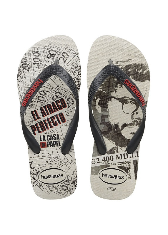 Depois do sucesso das primeiras temporadas da série “La Casa de Papel”, o Professor e sua turma encerram as férias no dia 19 de julho com a estreia da terceira temporada. Havaianas se inspirou na famosa máscara de Salvador Dalí e o icônico professor Sérgio Marquina, ou o atencioso Salva, para as duas estampas da linha exclusiva.