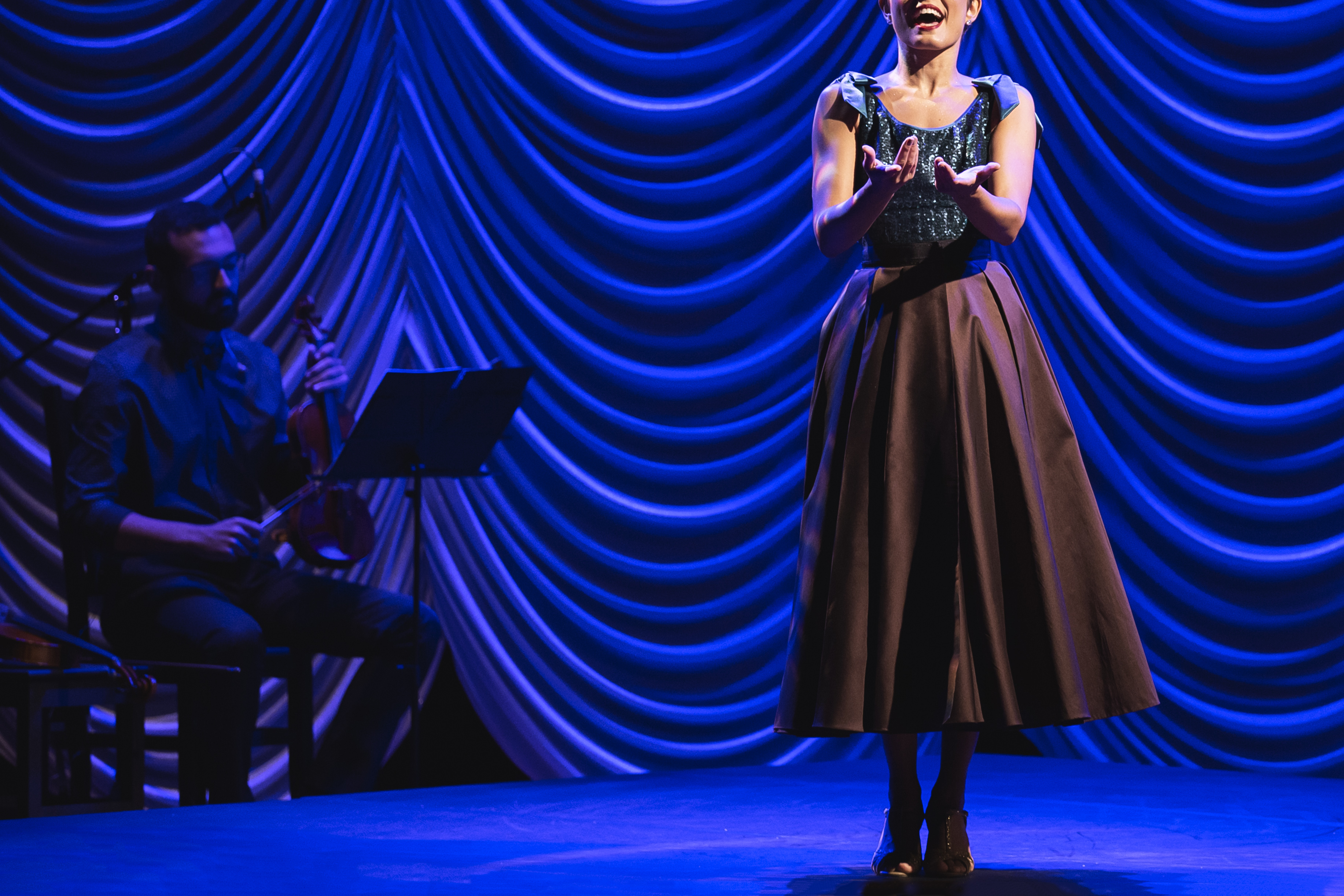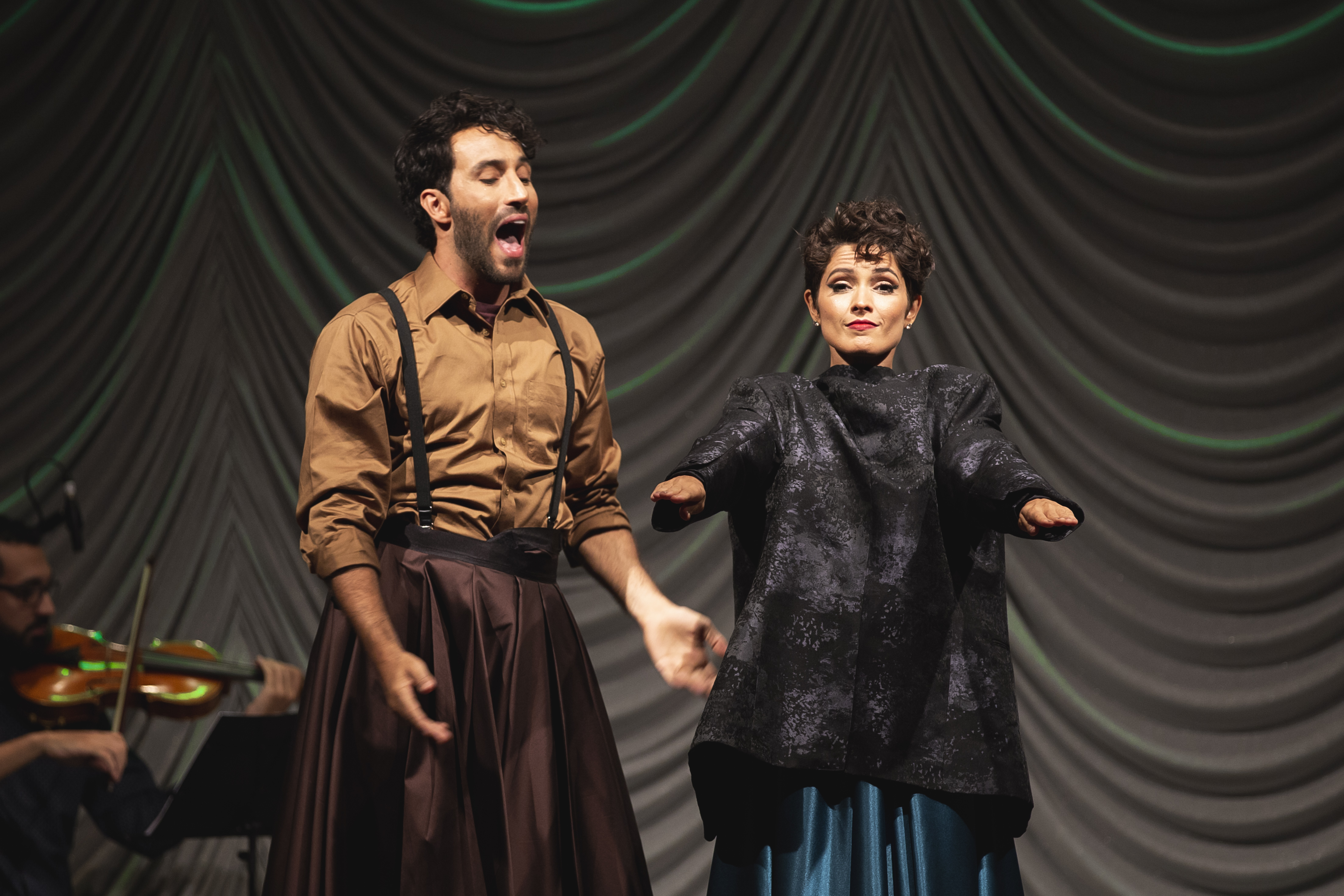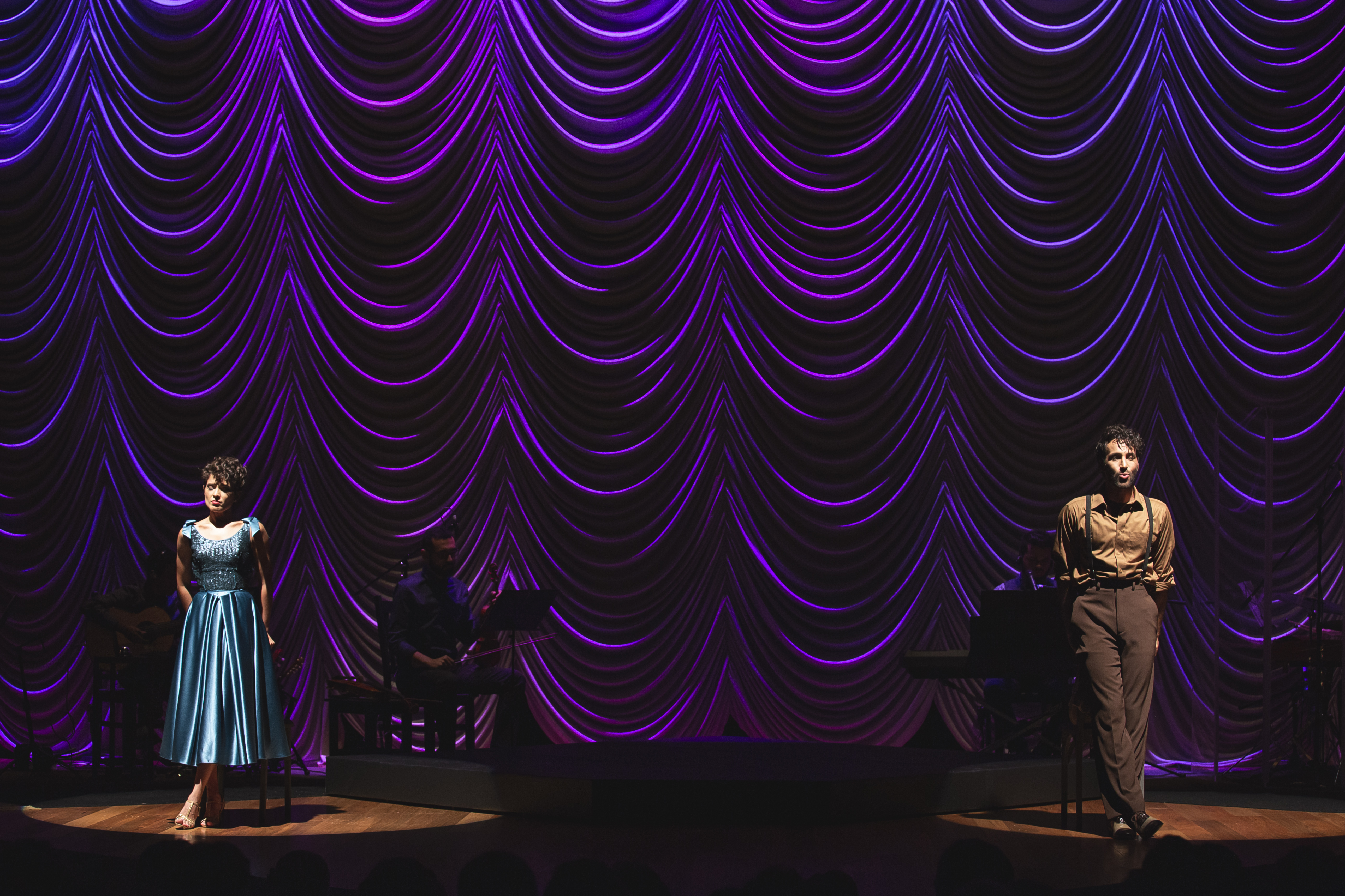 Os figurinos criados pelo estilista Fause Haten se revelam ao longo do espetáculo. As peças vão sendo removidas uma a uma e trazem novas camadas que se traduzem em números musicais. Já o cenário de Doris Rollemberg faz uma verdadeira homenagem ao teatro, trazendo para a cena um camarim, coxias e até o urdimento de um palco. Uma banda composta por cinco músicos também acompanha a dupla de atores em cena.