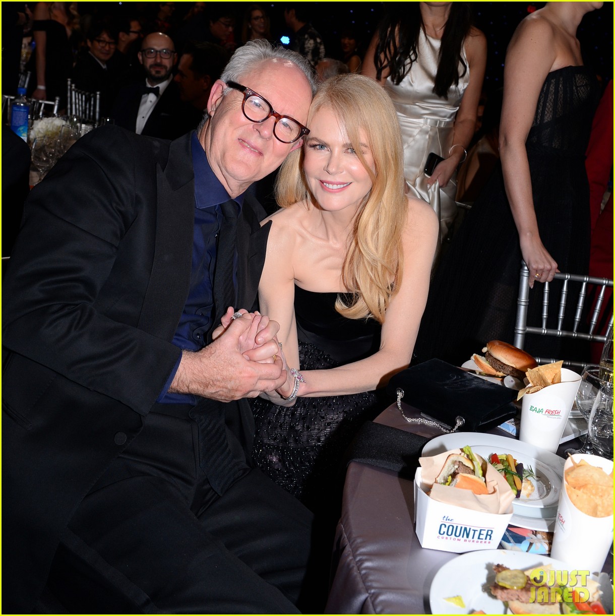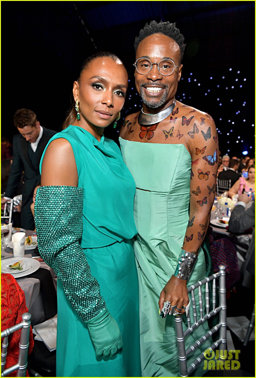 Enquanto as câmeras não rodavam durante os intervalos comerciais, as celebridades estavam fora de seus lugares e se misturavam com amigos no evento deste domingo, 12/01, no Barker Hangar em Santa Monica, Califórnia.